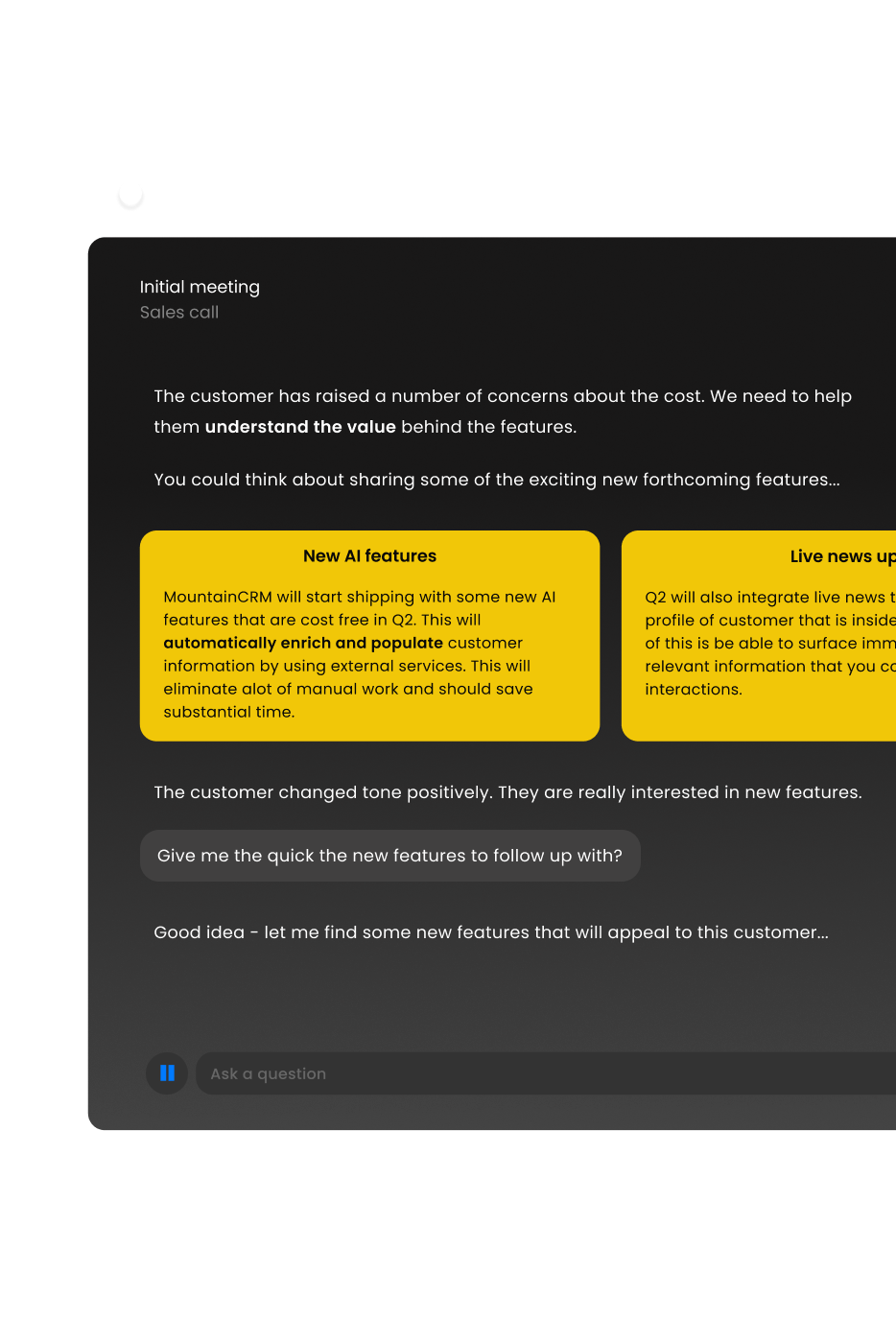 Surface the right proof, product detail, and next-best answer during the conversation.
